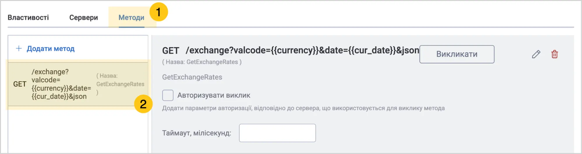 - Код API — код API зʼєднання, до якого належить метод.