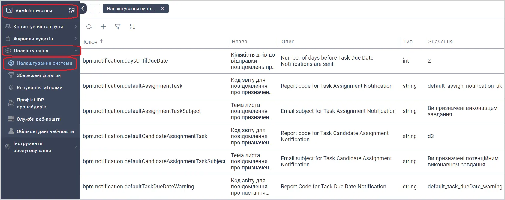 | bpm.notification.defaultAssignmentTask | Код звіту для повідомлення про призначення завдання | string | default_assign_notification_uk |